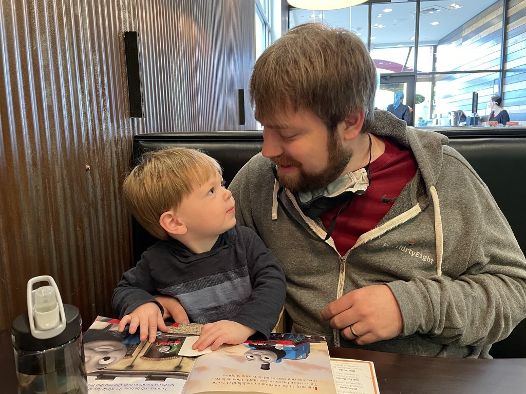 Grandson James spent the night Sunday and was here until after school Monday when his parents demanded him back. I have found a joy, a joy sufficient to last through another not quite normal Christmas. James born on June 27 will be two and one half this Christmas. He loves the lights, decorations, and the carols. James is not excited, actually rather unsure of these characters in red suits and white beards. He does think white hair and scruff-ly white beards are perfectly acceptable. He delights in his grandparents; he is fortunate to see all of his grandparents for at least one overnight a week. He then is joyous to return home to find his mommie and daddy. James is Joy personified. I didn’t have to look too far to find joy this year. James has no list nor a long hoped for gift. He is surrounded by childish delights – old boxes that open and then close with a snap. He would have no interest in the long-forgotten ring the box once held. We discovered a great toy in the garage last week. Someone once gave our sons toy semi- trucks; I do not remember who. Nancy added the required four batteries, and the toy came to life. It will engage in all the sound of an over the road truck. When turned on, and James knows how, it sounds like an idling diesel. Air brakes pop, if backed there is a warning beep, the throat of the engine is heard when pushed forward. Another feature is when someone pushes down on the air horns the piercing sound of warning is heard. Nearly faded from memory the sound has returned. The truck’s warning now alerts scattered blocks and action figures to clear the way. James is very taken with the air horn and Nancy is less so – one might say not taken but given to annoyance.