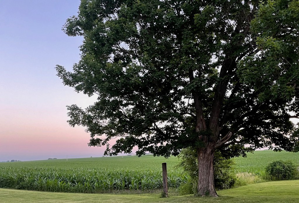A small agile man harnessed all four mules in the dawn light best to get going early. A close mucky night made even the skeeters lazy. In the night without the sun the heat was less intense, but it clung more. As the sun rose heat waves began shimmering. The hot of the day rising higher with the sun. Looking to the horizon blurred the vision for even a sharp-eyed man. A translucent curtain woven in July’s oven. The sun was a forager taking back the last rain, the spring rains, and the winter snows. As he headed to the corn field the wiry man thought the earth and every living thing was about sweat out. He could leave two mules in the shade up by the spring fed slew. Switching off letting one pair rest and cool down would allow him the long day needed. The corn could be laid-by before night if he kept steady walking behind the cultivator. Row after row all day gradually closer to being done. The last rows ending up by the crick itself. Slight puffs with each step, the dirt holding more heat as he made each round.