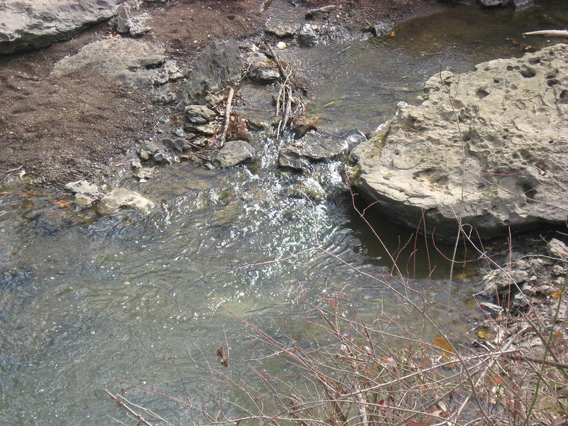 He had scrambled up the bluff and now he could come back down to a level wider area in the draw. The water ran shallow there. Light reflected off the rippling water as it flowed over a rocky ford. This area was just below a big spring. The stream flowed down the draw. The bluff behind it went up very sharply. He saw Freddie and hollered, “Hey Freddie what’s you shooting at?”