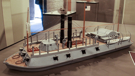 Poking around gazing at the old war tools, camp paraphernalia, extant documents or their copies. Strolling and reflecting trying to avoid clusters of people on the guided tours. I came up to an unmarked door; it was unlocked, and I opened it. I felt a mix of dizziness within a calm steadying force. It was as if some hydraulic of motion buffered my step inside. I was neither floating nor falling, rather fading forward at a steady pace. Once the door closed and I had my feet solidly on the floor I began a normal pace to a west facing window. It was warmer in here, either not cooled or inadequately vented. It reminded me these buildings were never meant to be seasonally comfortable as we demand today. People must have sweat a great deal more in 1863. My eyes readjusted and I saw a man in uniform staring motionless out a window to my right. A Union uniform as many others wore outside today. This one was rather plain and worn. I thought a true reenactor. The man had his back to me staring intently or maybe blindly, but certainly deep in thought. I moved over to a window away from him, so as not to interrupt his thoughts. I looked out to the West; the sight broke my silence. It elicited an unintended yelp from me. I was looking down not on the modern diversion canal but on the grand ole man hisself. There she flowed right at Vicksburg’s front door. At the shore Union gunboats, no power lines, no concrete streets, no traffic lights. The dusty streets were filled with uniformed men from both armies. Some Union men were mounted. It was impossible, still I was sure it was not some high-tech holographic display. Looking down Grove clear to the river past where I had parked and hiked to the courthouse. Now, there was nothing I had seen as I had ascended. My exclamation had interrupted the uniformed man’s thoughts.